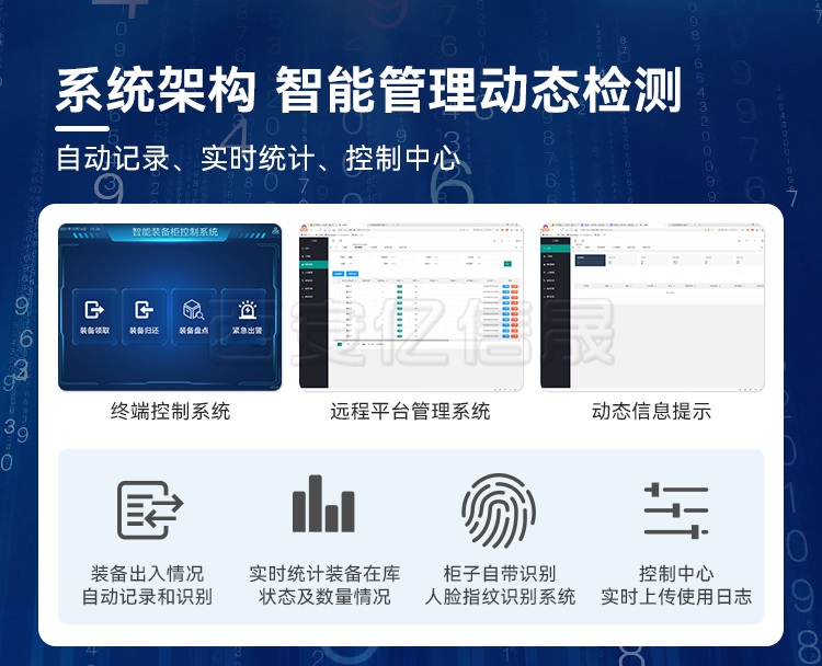 智能装备存放柜是一种结合了智能技术的存储解决方案,旨在提供安全、高效、可控的装备管理环境。装备存放柜通常由智能锁、传感器、电子控制系统和用户界面组成,具备以下优势: