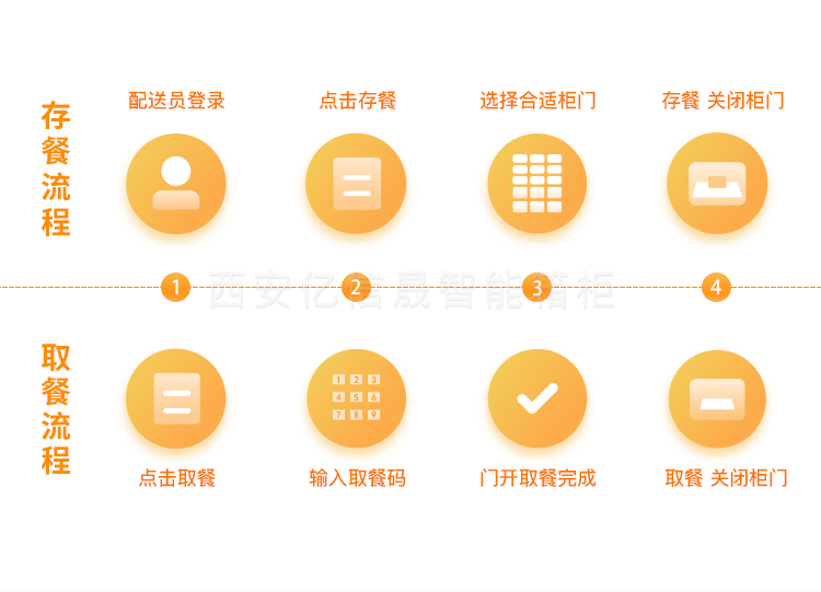 智能外卖取餐柜的出现解决了办公楼、小区、学校外卖柜存放难的问题,为员工食堂、运营商平台、校园及终端配送系统提供一整套的解决方案,节省了外卖员的时间和提高了用户的体验感。同时